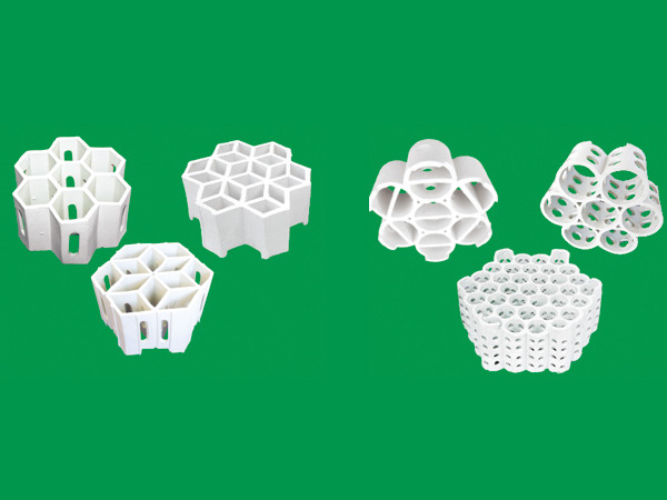- 陶瓷規(guī)整填料與散堆填料相比具有效率高,降壓低,處理量大,持液量小,放大效應(yīng)不明顯,操作彈性大等一系列優(yōu)點(diǎn)。它由許多具有相同幾何形狀的填料單元體構(gòu)成。陶瓷規(guī)整波紋
